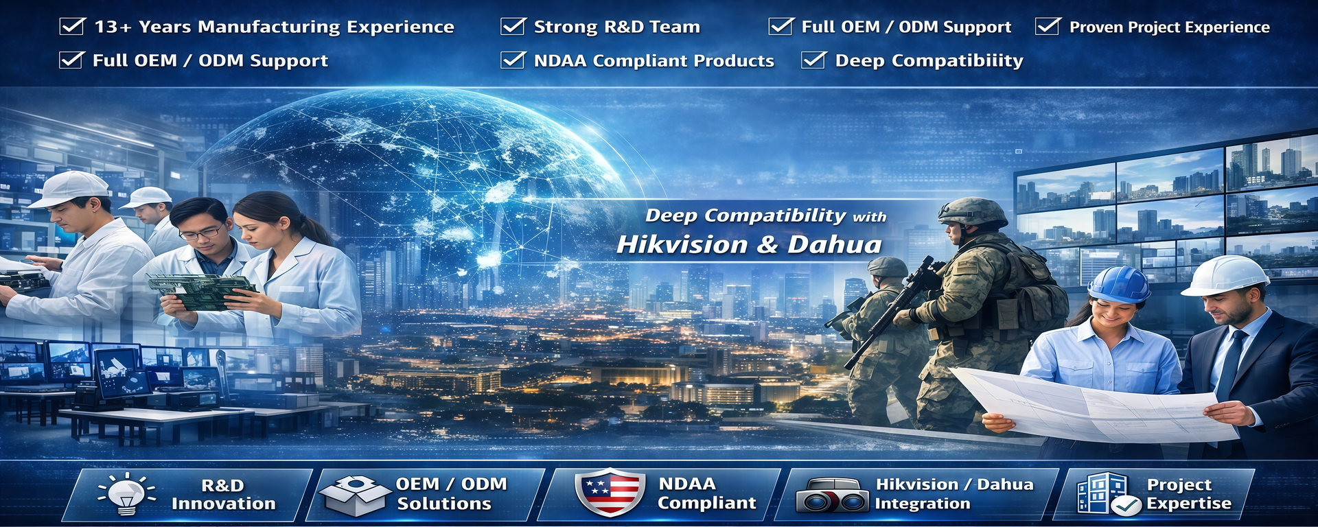 CE, FCC, RoHS certified. NDAA-ready solutions for global markets including North America and Europe.