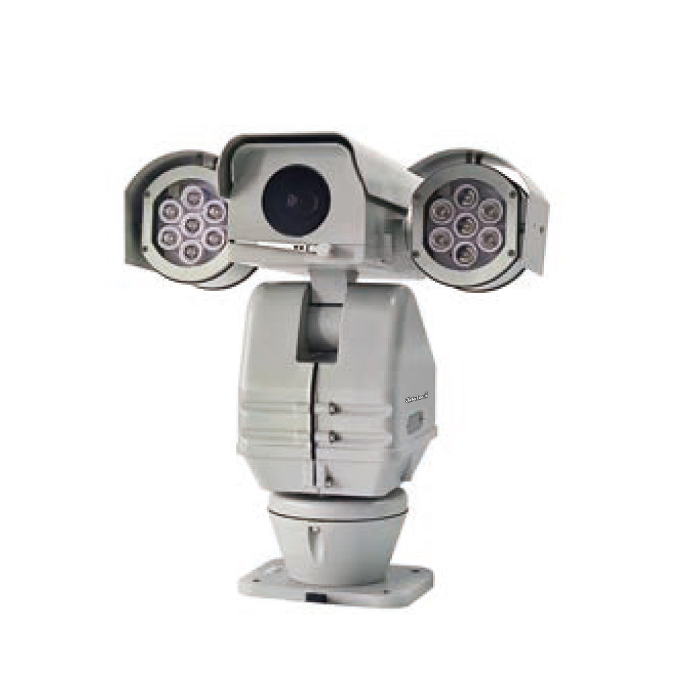 The PTZ uses a combination of camera, PTZ, decoder, protective cover, wiper, automatic heater, window defrost/defogging, and sunshade