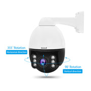 2) Pan: 0˚-355˚(endless) and rotate speed 0°/s~30°/s, Tilt: 0˚-90˚(Auto flip) and rotate speed 0°/s~40°/s
