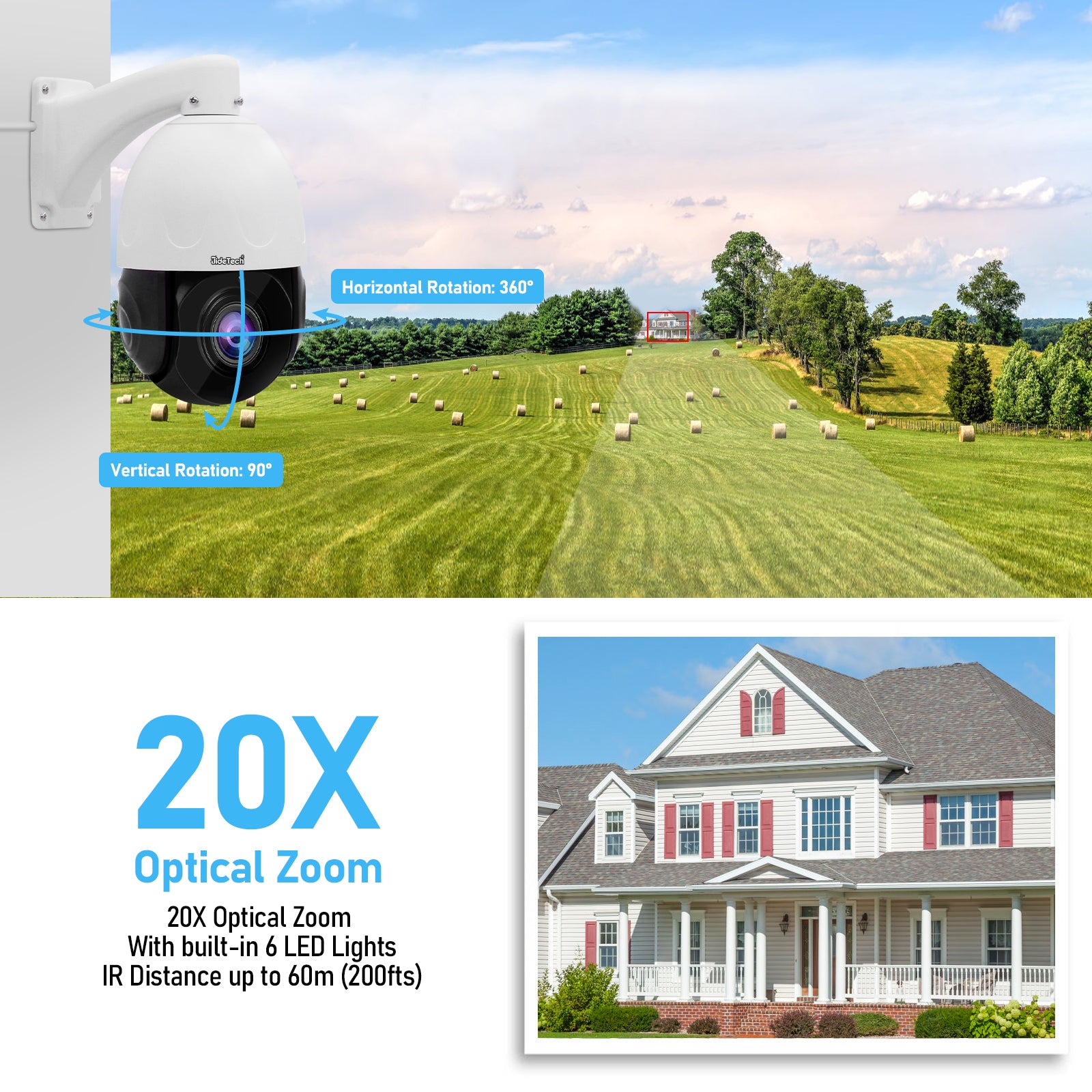 JideTech 20X 4K POE PTZ IP Security Camera with Auto Tracking (P2-20X-8MP)
